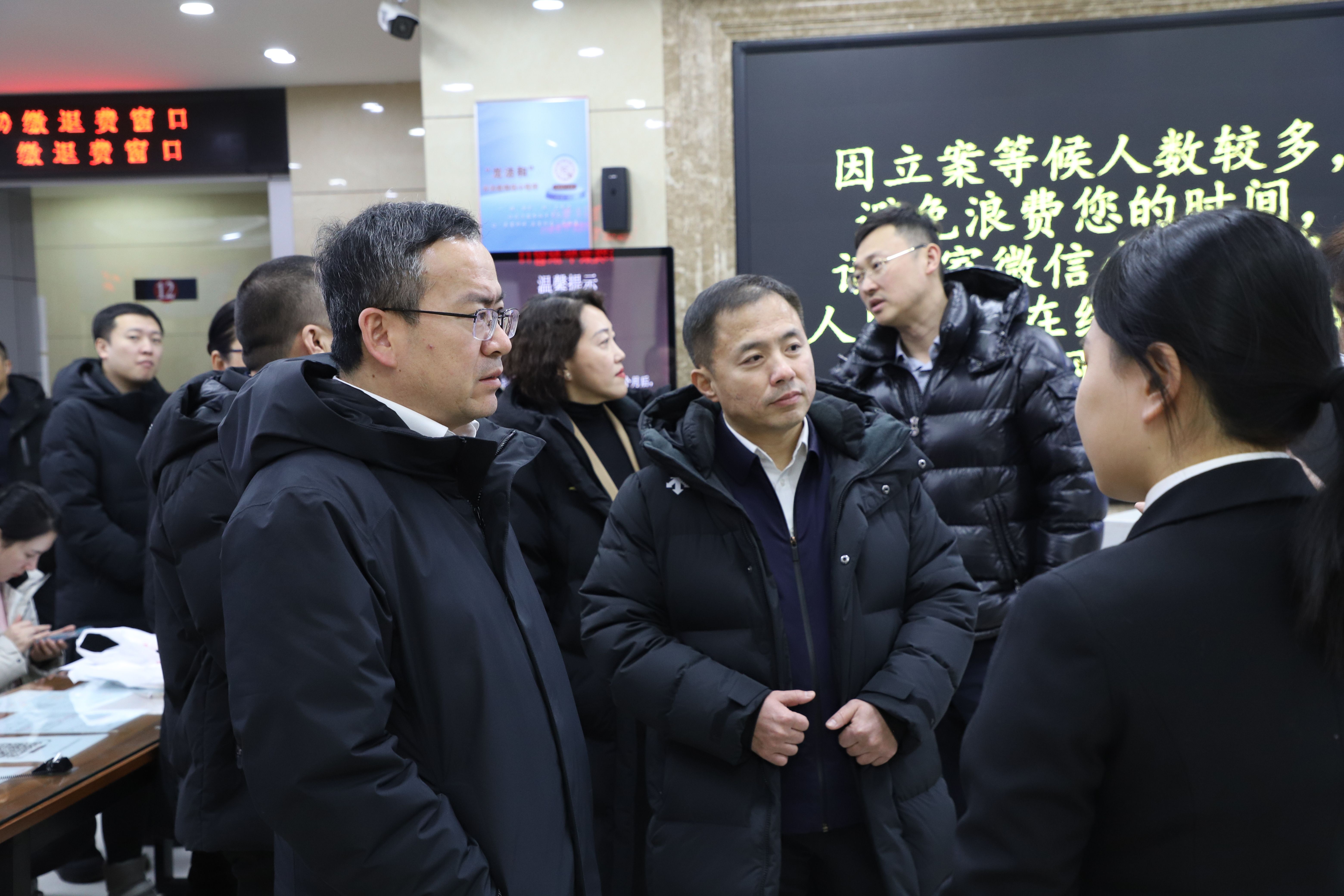 大家首先来到诉讼服务中心实地参观。讲解员带领大家参观了安全检查区、自助服务区、立案区等功能区域,展示了智能设备使用方法,重点介绍了便民服务措施、多元解纷机制与“一站式”服务流程。大家对案件受理的流程有了初步了解,也切身体会到法院践行司法为民宗旨的种种举措,纷纷对阳光、透明、高效、便民的诉讼服务表示赞扬。